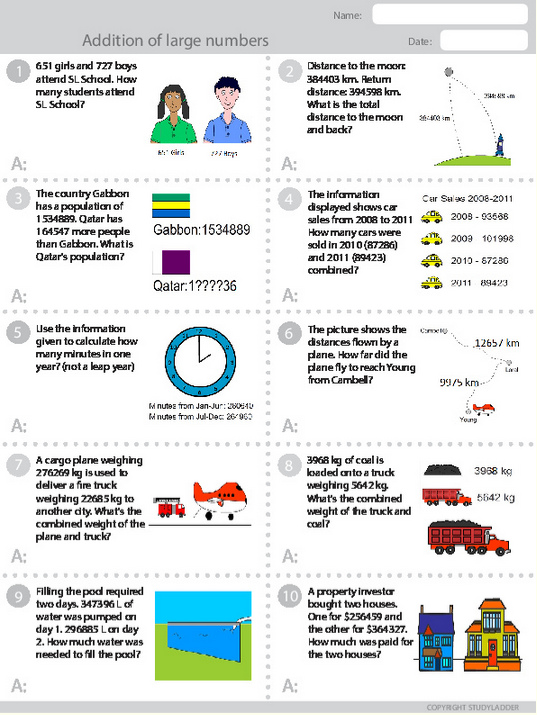 Adding large numbers (problem solving) - Activity Type
