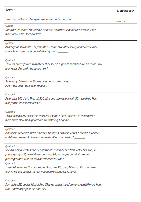Two step problem solving (addition and subtraction)