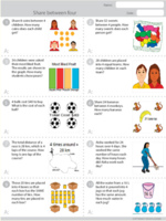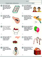 Samples: Ordinal numbers. Odd and even amounts. Matching equations to word problems.