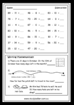 - Subtraction of two digit numbers